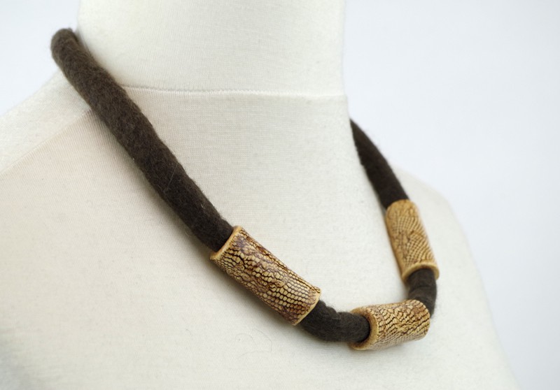 UROBOROS naszyjnik ceramiczny na pojedynczym dredzie filcowym